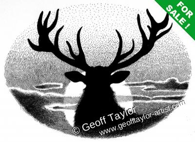 A red deer stag silhouetted and backlit by the sun, Torak meets the Red Deer Clan.